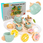 DREWNIANY ZESTAW DO HERBATY DLA DZIECI AKCESORIA HERBACIARKA TALERZYKI TACA