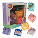 KLOCKI SENSORYCZNE UROCZE ZWIERZAKI KOSTKI GUMOWE 6EL MONTESSORI ZESTAW