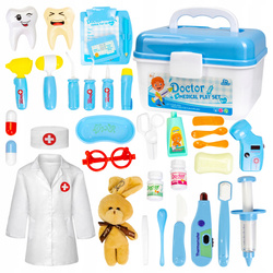 MAŁY DOKTOR ZESTAW LEKARSKI W KUFERKU DLA DZIEWCZYNKI FARTUCH AKCESORIA