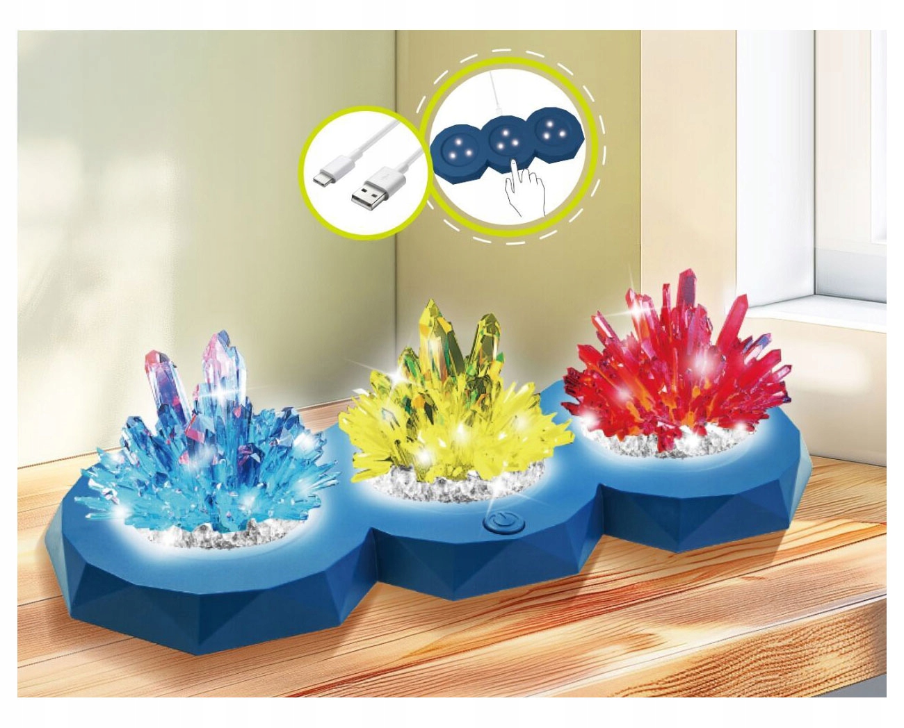 ZESTAW DIY – HODOWLA KRYSZTAŁÓW - 3 SZT + PODSTAWKA LED!