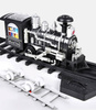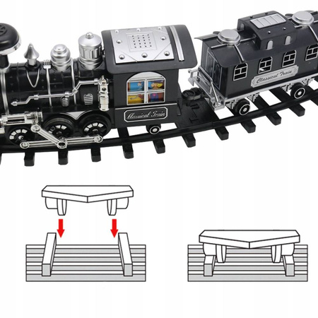 Pociąg uruchamiamy pilotem dołączonym do zestawu. Można sterować jazdą do przodu, do tylu, przyśpieszyć oraz zatrzymać kolejkę a także włączyć i wyłączyć dźwięki ciuchci.