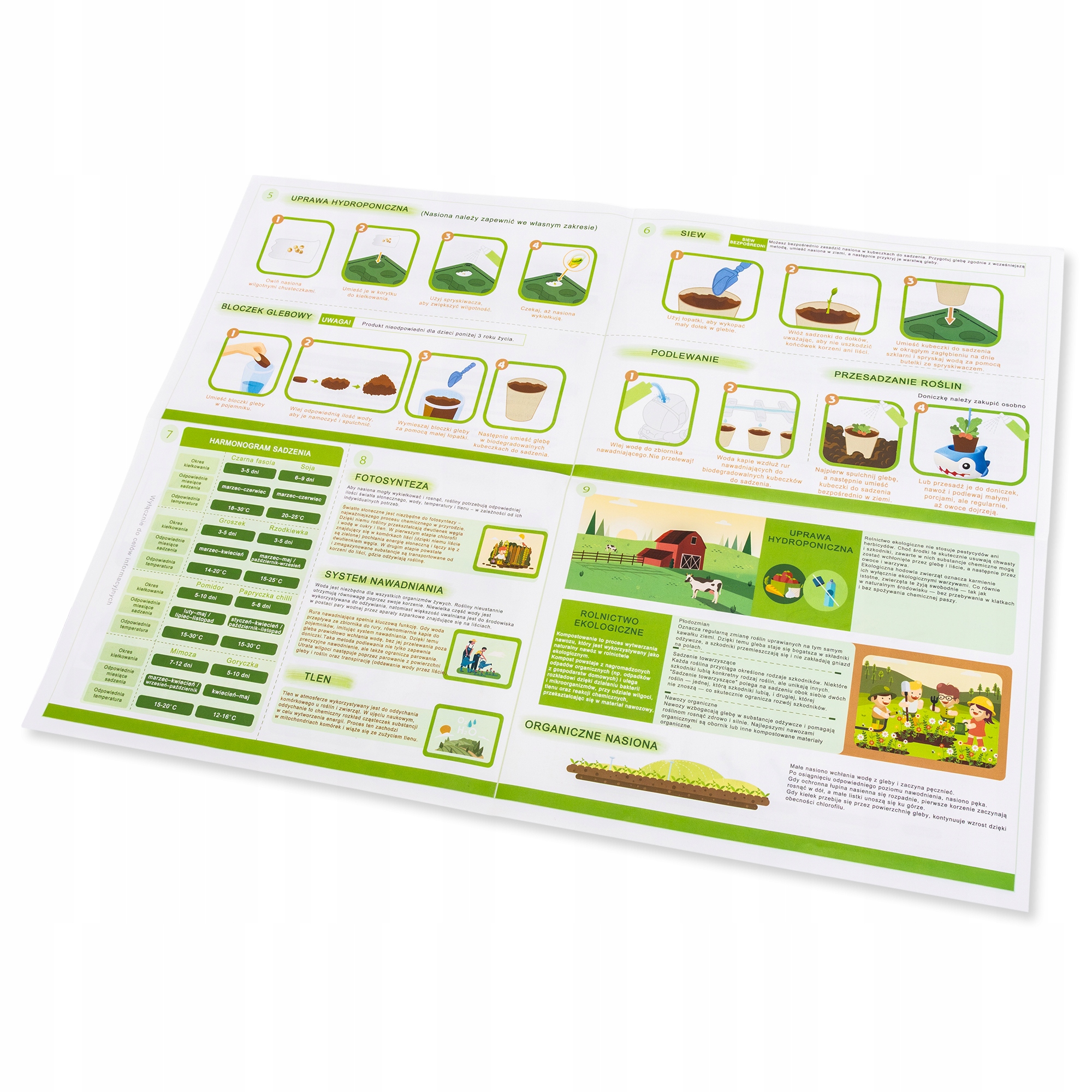 Zestaw pozwala dzieciom wcielić się w rolę małego ogrodnika i odkrywać tajemnice przyrody poprzez praktyczne doświadczenie. Uczy, jak wygląda wzrost roślin od ziarenka aż po dorosłą roślinę, jak działają różne warunki atmosferyczne i jak ważne jest codzienne podlewanie.