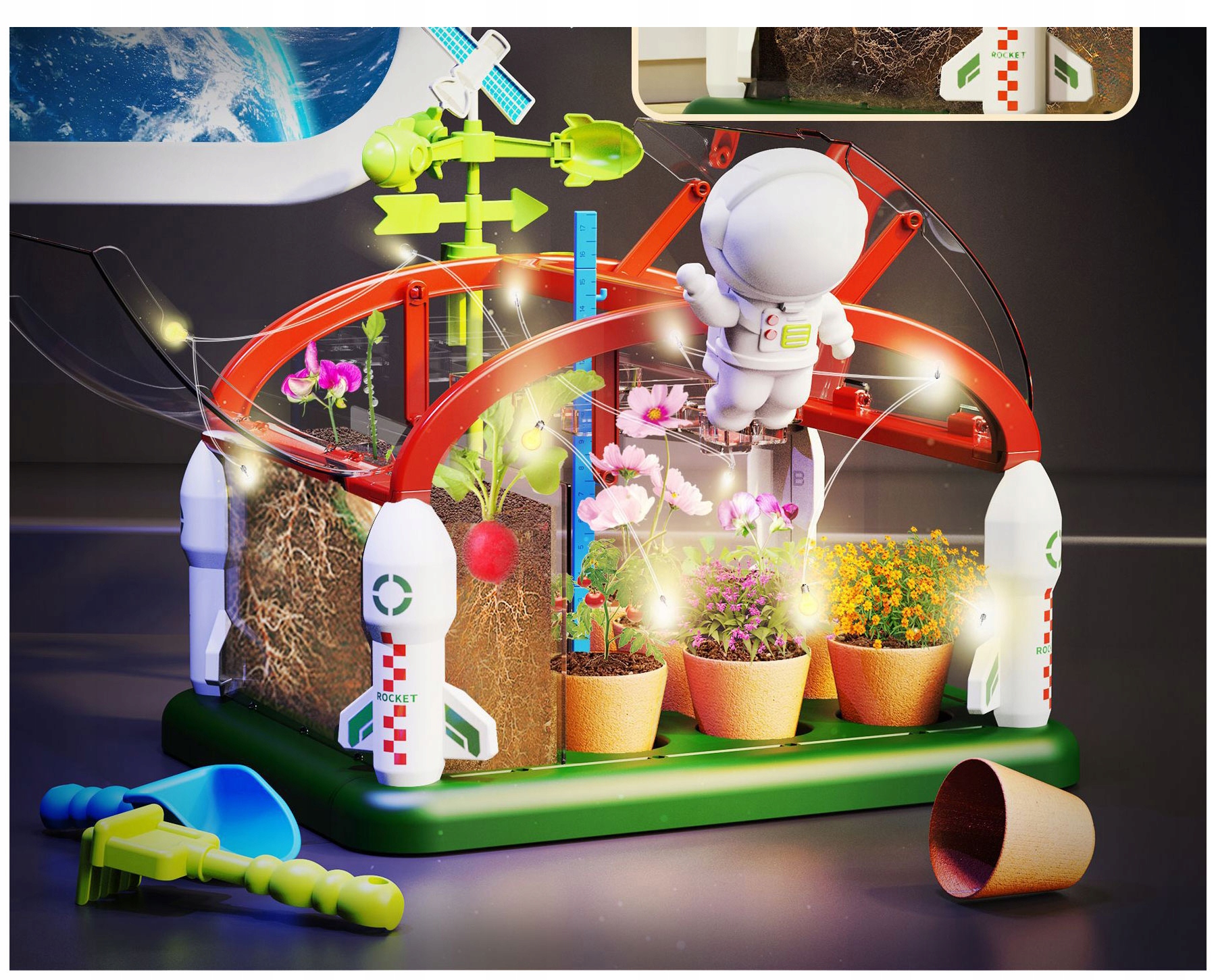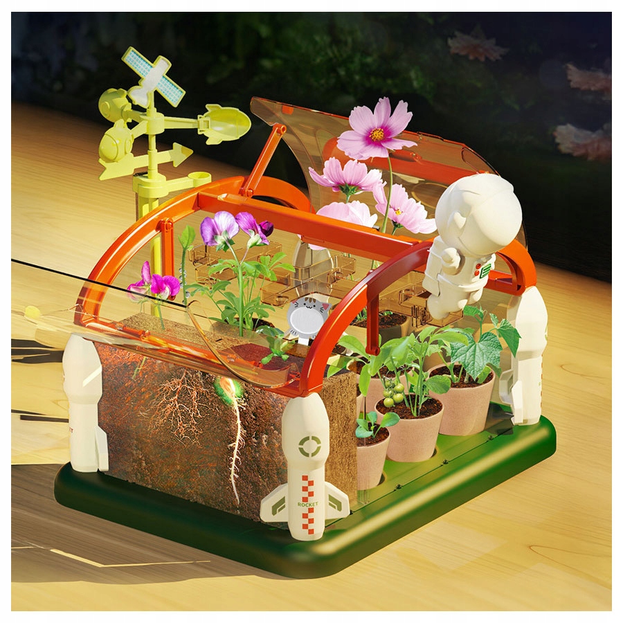 SZKLARNIA EDUKACYJNA DLA DZIECI – ZESTAW DO UPRAWY ROŚLIN Z TERMOMETREM I IRYGACJĄ + LAMPKI LED