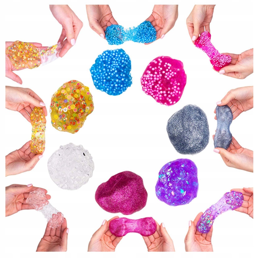 - Liczba kolorów: 12szt losowych barw klasycznego slime / 6szt różnych kolorów piankowego slime