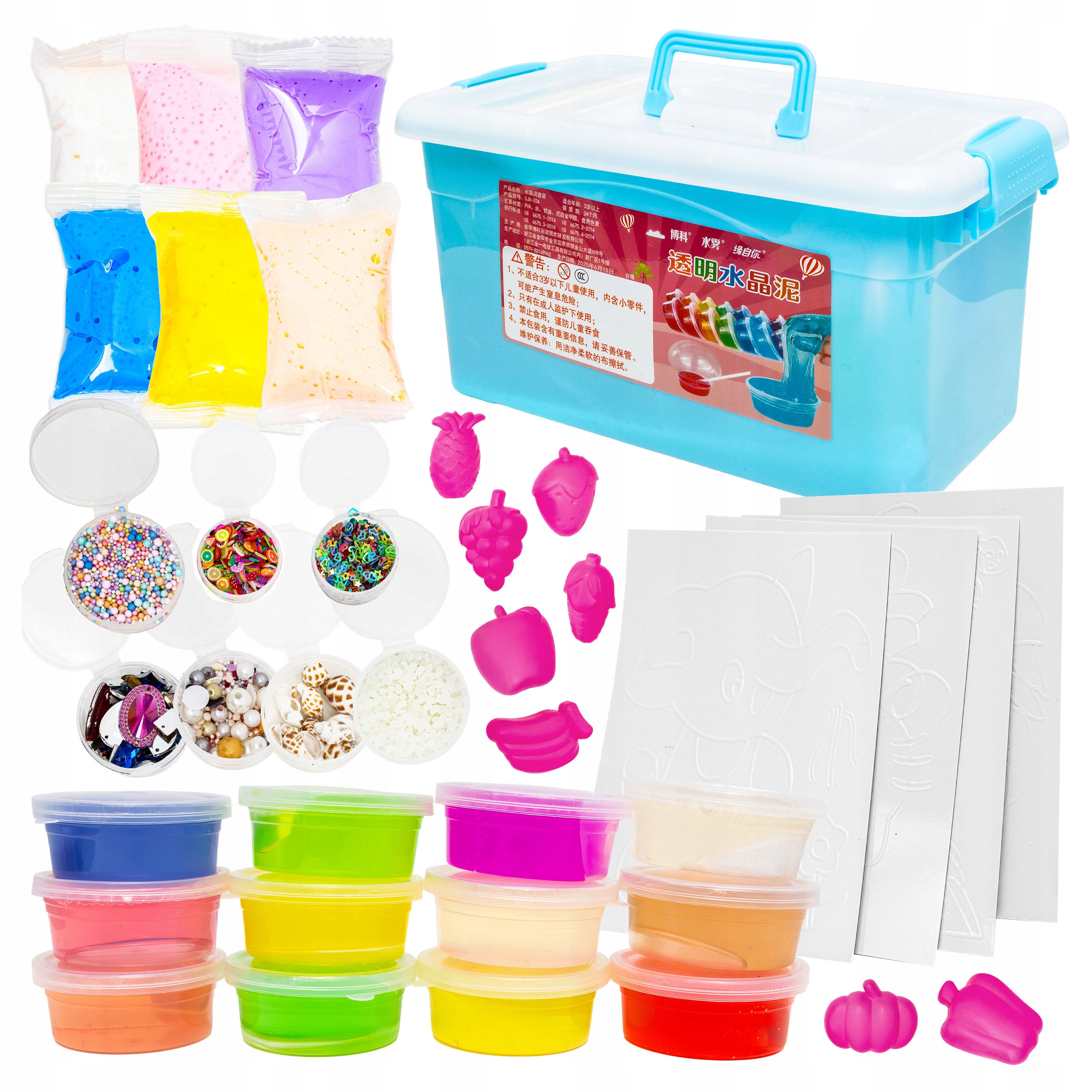 ZESTAW DO ROBIENIA SLIME GLUTY DLA DZIECI GLINKA FOREMKI NACZYNIA W KUFERKU