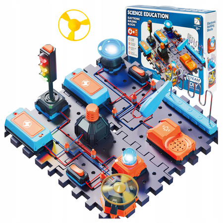 Zestaw zawiera elementy do tworzenia zarówno prostych jak i bardziej zaawansowanych obwodów szeregowych i równoległych. Zasilany jest bateriami (3 x AAA 1,5V na jednostkę, brak w zestawie). Zestaw zachęca do samodzielnego eksperymentowania, rozwijając umiejętności techniczne i naukowe poprzez zabawę.